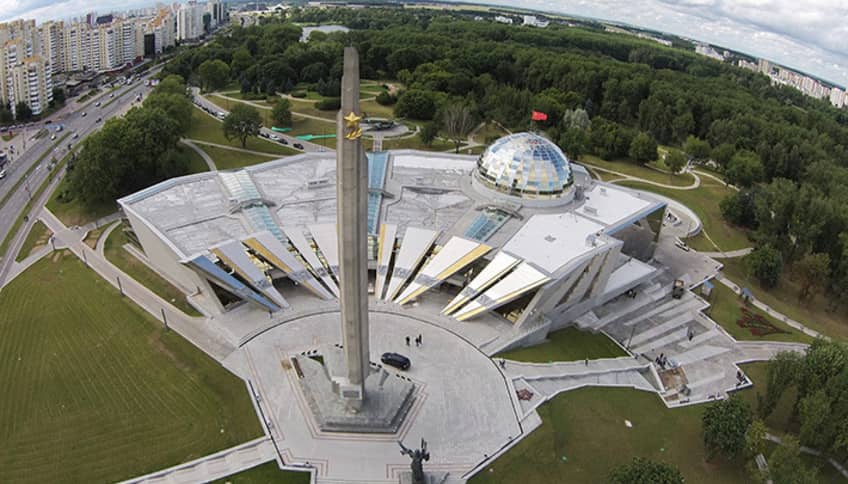 Новое здание музея , вместе с обелиском “Минск – город герой”, составляет единую величественную композицию.